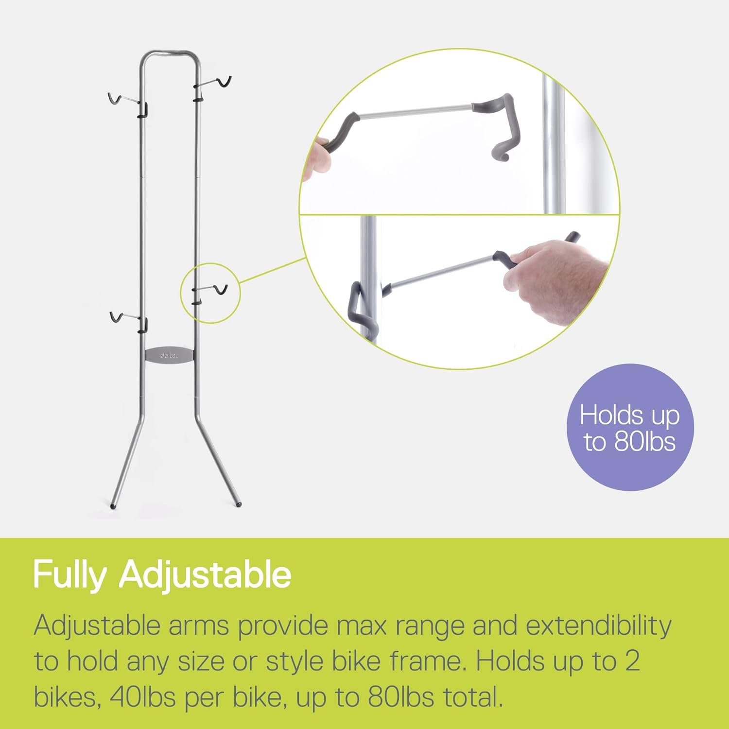 • Fully Adjustable Arms: Swivel and set the hooks at any height or angle to fit various bicycle frames and maximize vertical storage. Suitable for any style, including e-bikes (within weight limit).