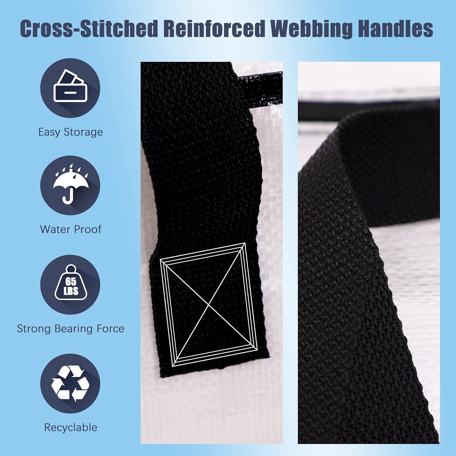 The HOMESURE 8 Pack Large Strong Moving Bags are a game-changer for anyone needing durable, extra-large storage solutions. Each semi-transparent, heavy-duty tote holds up to 65 lbs and a massive 86 liters, making them perfect for moving or organizing clothes, bedding, and more. Upgraded reinforced zippers, strong handles, and moisture-resistant materials ensure longevity, while their fold-flat design saves space when not in use. Skip the bulky boxes. These bags are lightweight, reusable, and ideal for dorms or home moves.