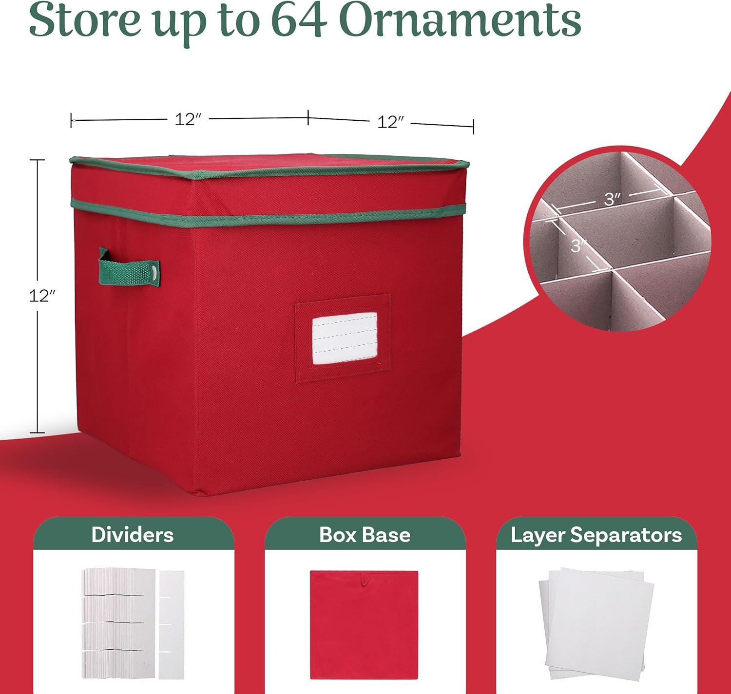 • Modular Organization: Includes a foldable storage cube design and 64 adjustable cardboard compartments to fit ornaments up to 3 inches, perfect for holiday storage or as a versatile ornament box.