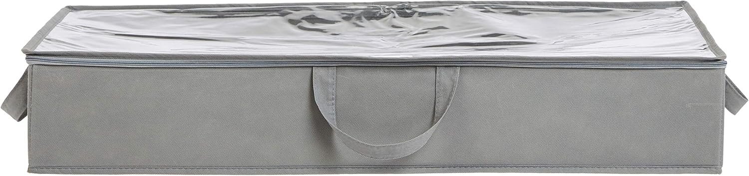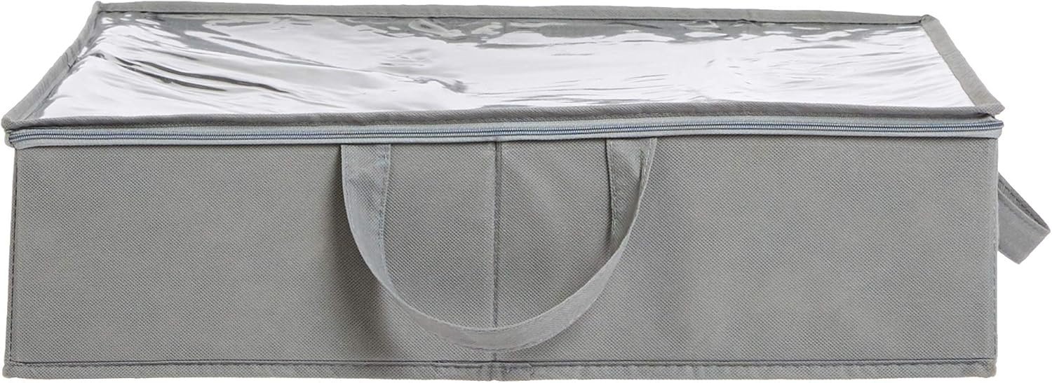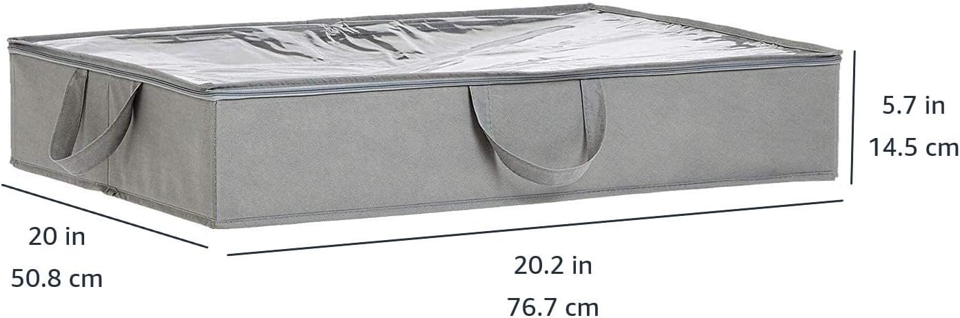 Maximize your storage space with the Amazon Basics Under Bed Fabric Zipper Storage Container Bags, available in a convenient 2-pack. These durable fabric bags feature a clear top for easy content identification, secure zipper closure to keep items dust-free, and loop handles on three sides for effortless access and portability. Perfect for organizing seasonal clothing, blankets, linens, and keepsakes, each 30.2 x 20 x 5.7 inch bag can be folded flat when not in use. A smart, space-saving solution from Amazon Basics for a clutter-free home.